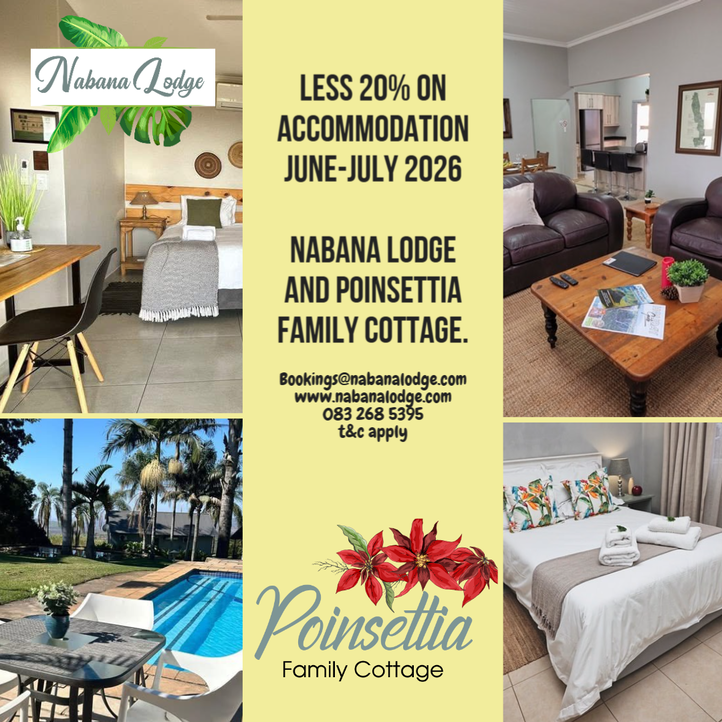 Book at Nabana Lodge in Hazyview to experience the balmy autumn weather of the lowveld. Pack your hiking boots and enjoy the clean fresh air, exploring the many natural wonders of the area. With clear winter air, it is the perfect time for amazing photograpic oppertunities of God's Window, the Pinnacle and Three Rondavels on the Panorama Route. Explore Graskop canyon down the glass lift of Graskop Lift Company and browse the many curio stalls. It is also the perfect time to explore Kruger National Park with better visibility for exciting game views. Opt for self drive or go on a safari game drive. Tour guides know the park intimately and often take you right to a hyena's den, lion kill or nesting sites for illusive birds.